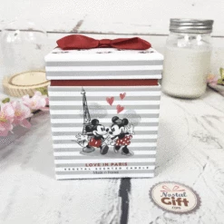 Bougie Mickey Et Minnie Et Son Coffret Cadeau – Parfum Pomme D’amour CaramĂ©lisĂ©e – Love In Paris – St Valentin