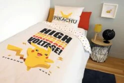 Pokermon – Housse De Couette 140×200 Et Taie D’oreiller – Pikachu “High Voltage” – Coton