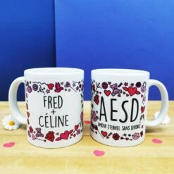 Mug Duo Personnalisable”… + … = AESD Amour Ă©ternel Sans Divorce”