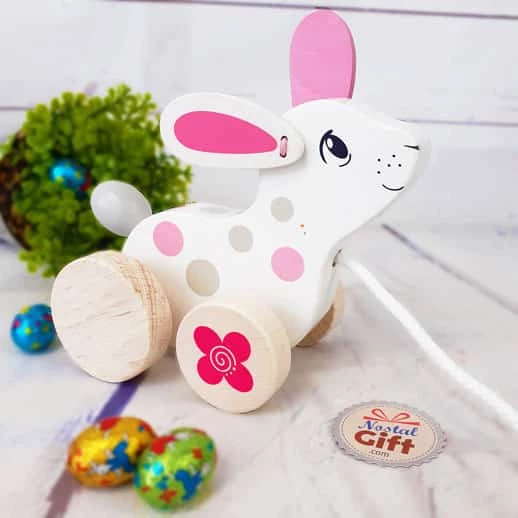 Animal en bois à tirer – Lapin blanc Goki