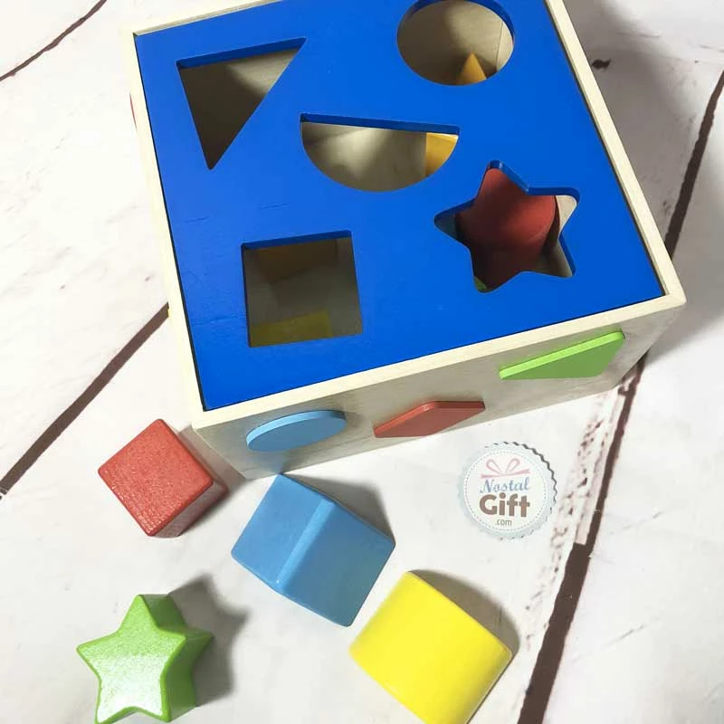 – Contient : un cube + 10 formes colorées à insérer dans cette boîte