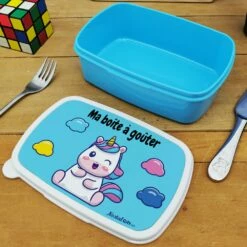 Faites plaisir avec cette boîte à goûter pour enfant de la collection ” Licorne” accompagnée de sa gourde.