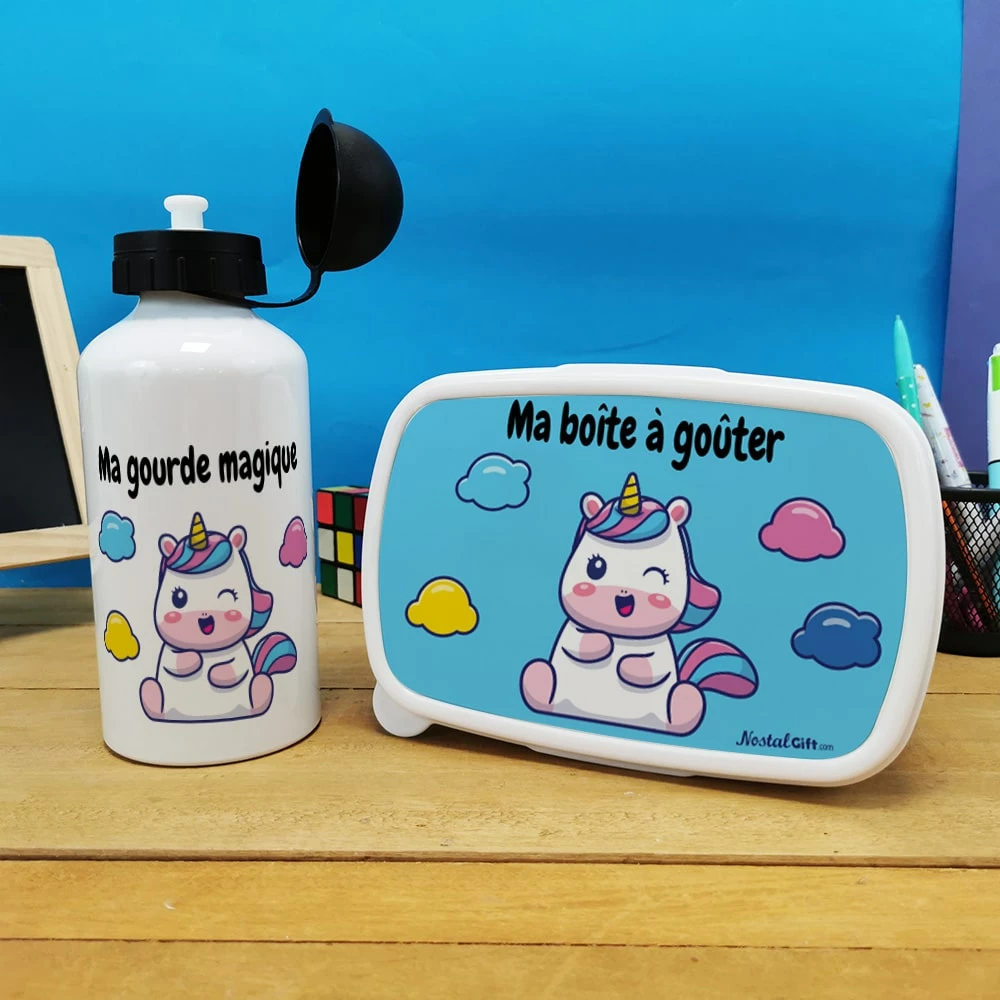 Boite goûter & gourde enfant Licorne – Cadeau pour fille, pour la rentrée scolaire