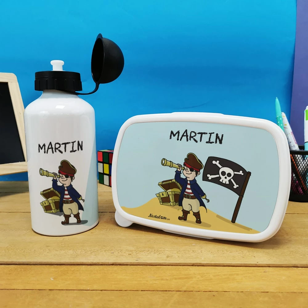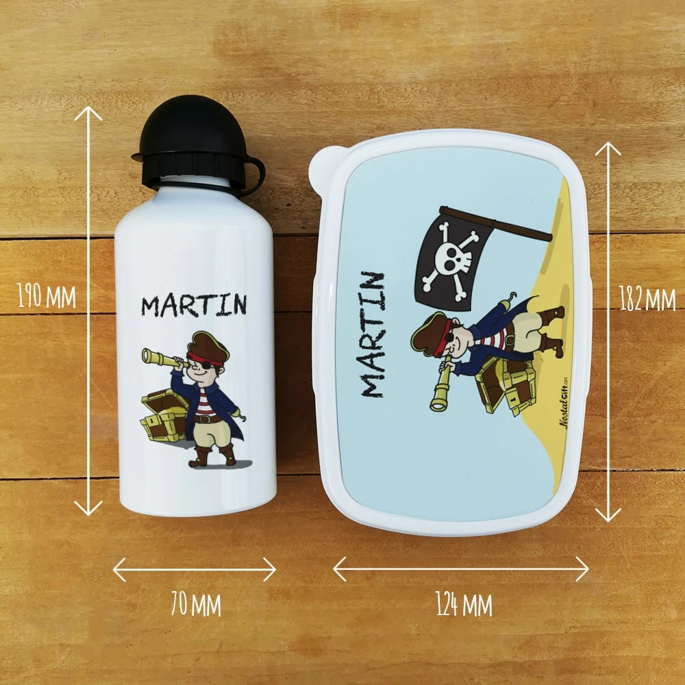 Boite goûter & gourde enfant personnalisées Pirate – Cadeau pour garçon, pour la rentrée scolaire ou fêter un anniversaire