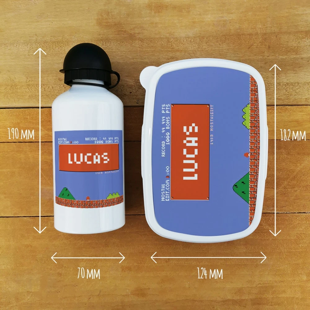 Boite goûter & gourde enfant personnalisées Retrogaming – Cadeau pour garçon, pour la rentrée scolaire ou fêter un anniversaire