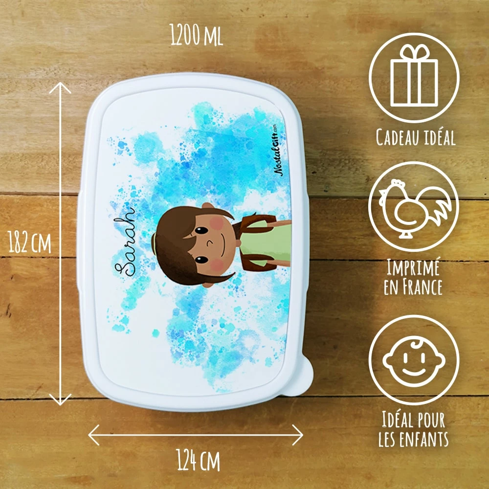 Cette boite à gouter est parfaite pour un cadeau pour cadeau original pour une fille pour la rentrée scolaire de votre fille. Sur cette boîte à gouter, il sera écrit ” le prénom de votre fille ” sur l’avant grâce à votre personnalisation. En plastique et avec une fermeture hermétique, cette boite est idéale pour le sac de sport ou le cartable de votre enfant.