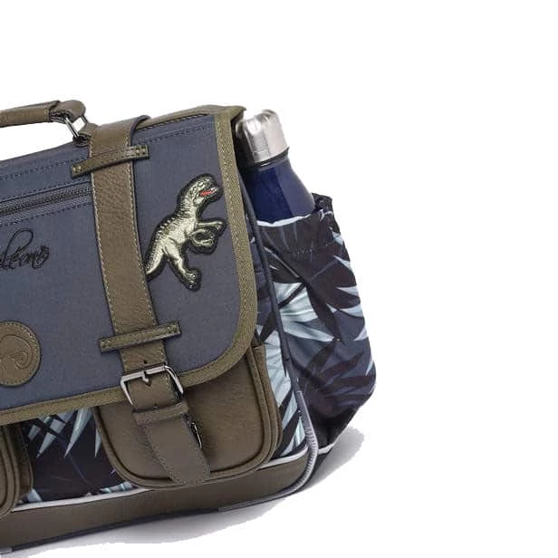Cartable 38 cm bleu et ses dinosaures (Grey Tropical) – 2 compartiments – Caméléon – CP CE1 CE2