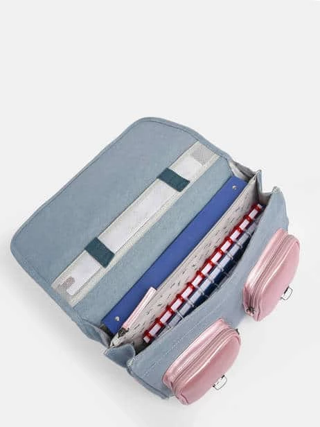 Il se ferme à l’aide d’un rabat et de deux fermoirs, et possède deux petites poches à fermeture éclair sur le devant, pratique pour le goûter.