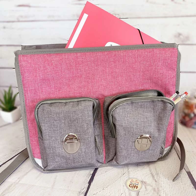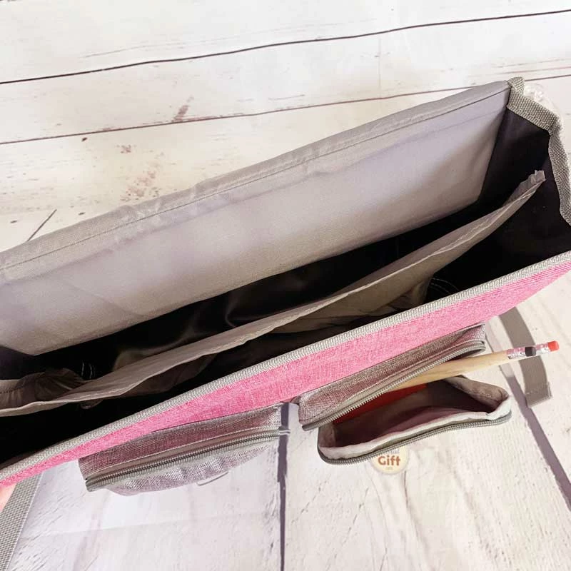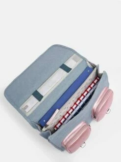 – 1 poche transparente zippée sous le rabat pour y glisser son emploi du temps et divers documents