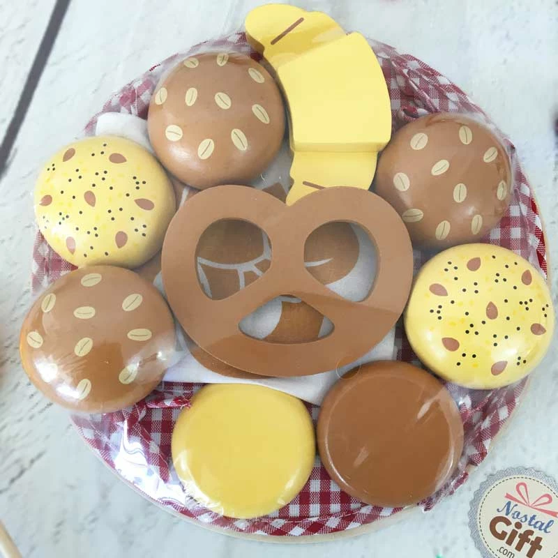 - contient : 11 pièces : 1 assiette en bois, 2 petits pains, 2 petits pains céréales, 1 croissant, 2 pains natures, 1 bretzel, 1 serviette, 1 torchons
