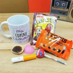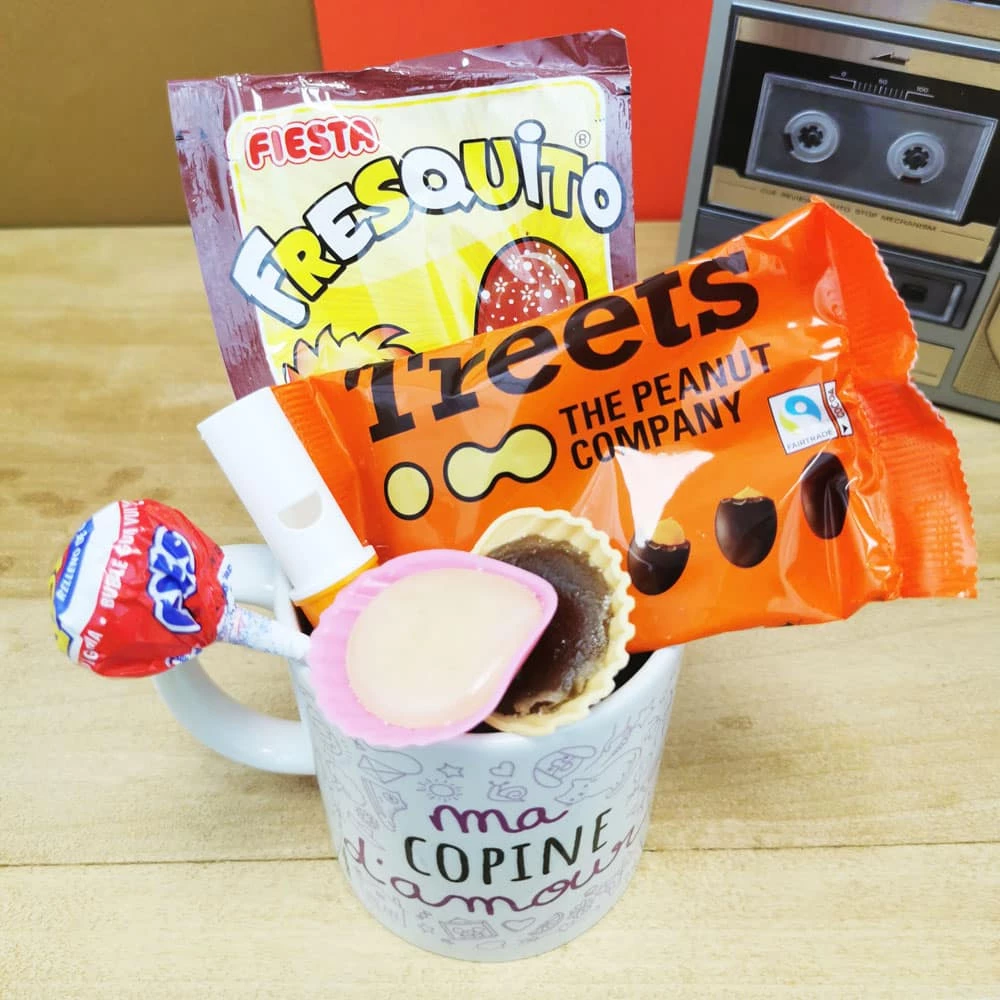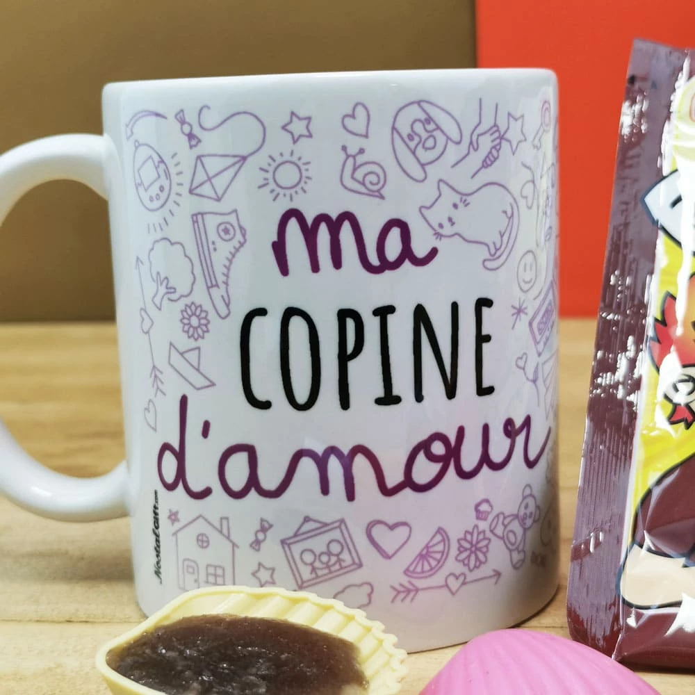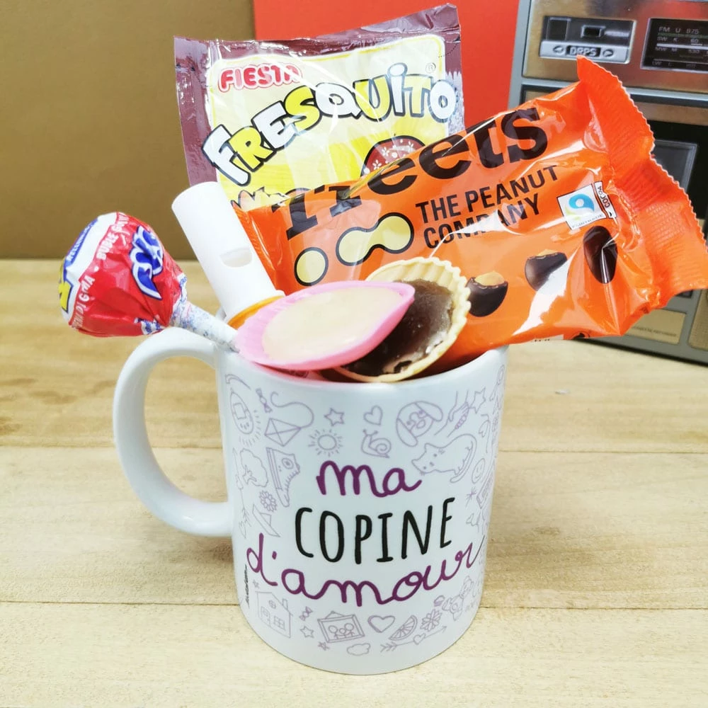 MUG “ma Copine d’amour ” rempli de bonbons rétro 70 – Cadeau Copine