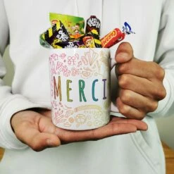Mug “Merci” bonbons rétro 90 – Collection arc-en-ciel