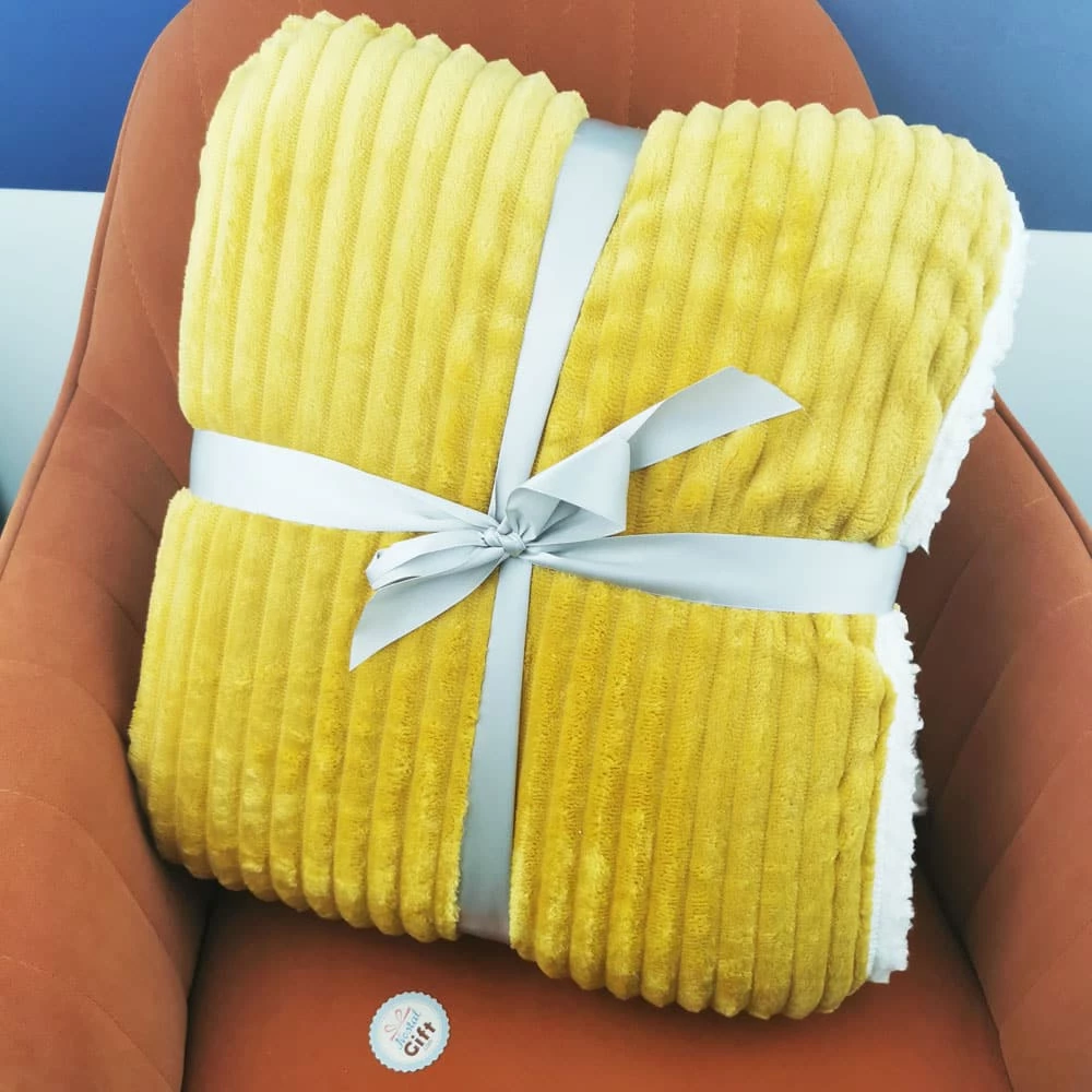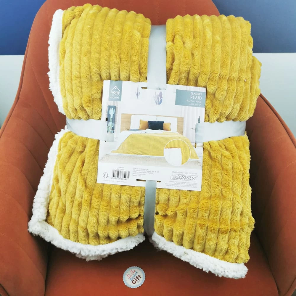 Plaid doux côtelé moutarde polaire blanche 180X220CM