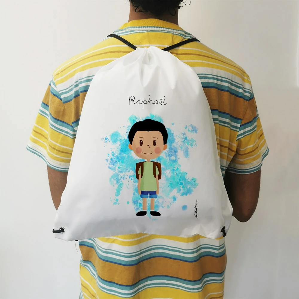 Sur ce sac de gym, il sera écrit ” le prénom de votre enfant ” sur l’avant grâce à votre personnalisation. En polyester et une fermeture facile grâce à ses cordons, ce sac est simple d’utilisation et ne craint pas l’eau qui pourrait couler de la gourde ou du maillot de bain.