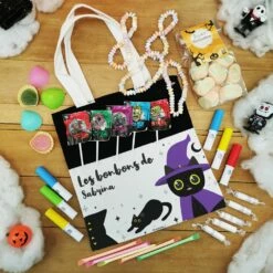 La chasse aux bonbons pour Halloween ne pourrait se passer de ce sac personnalisé au nom de votre enfant ! Votre enfant sera bien équipé avec ce très joli sac au design de chat noir et en plus il sera ravi de déguster nos meilleurs confiseries (Collier, roudoudou, sucette, sifflet, guimauve…). N’hésitez pas à consulter nos bonbons Halloween pour compléter ce sac de douceurs !