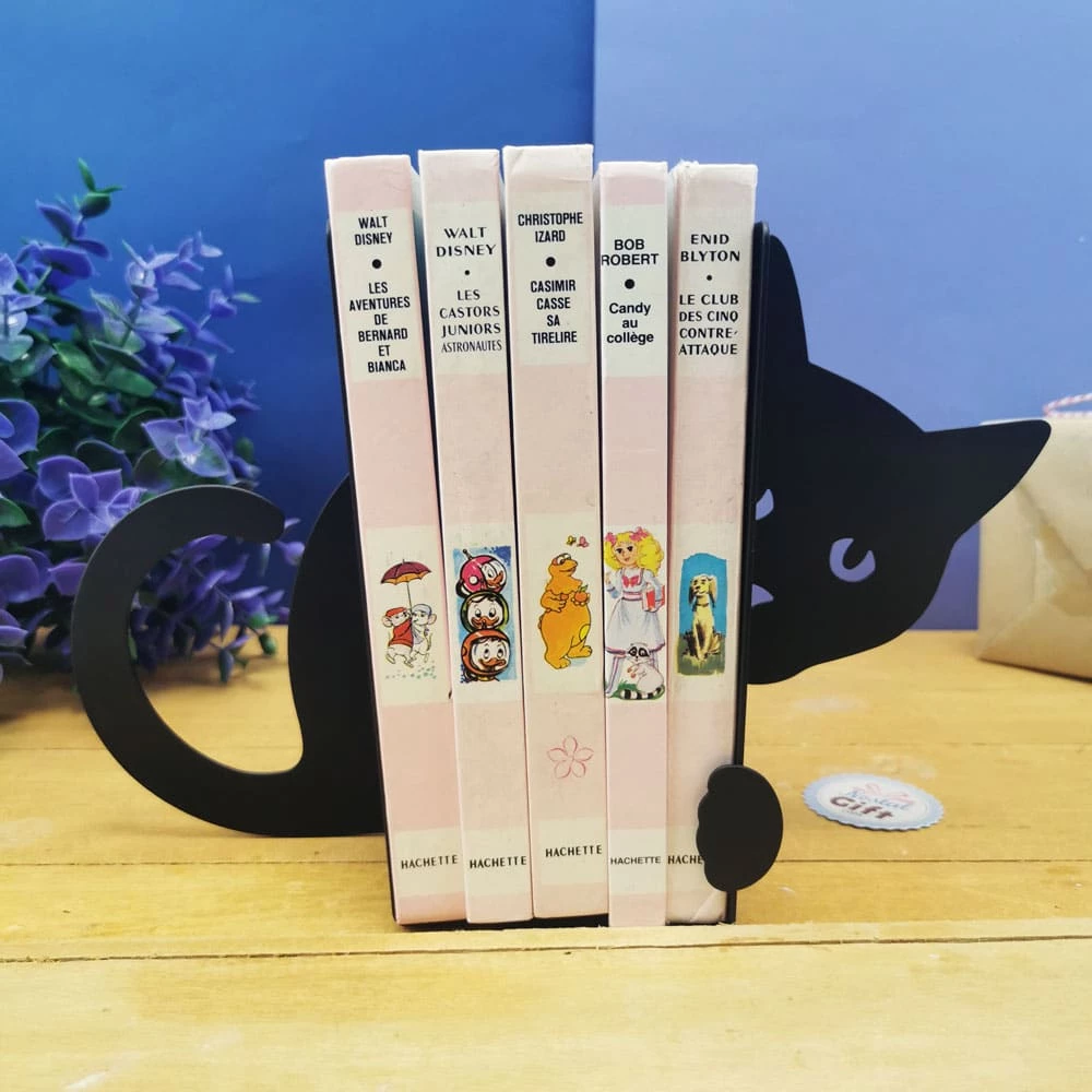 Serre-livre chat en métal