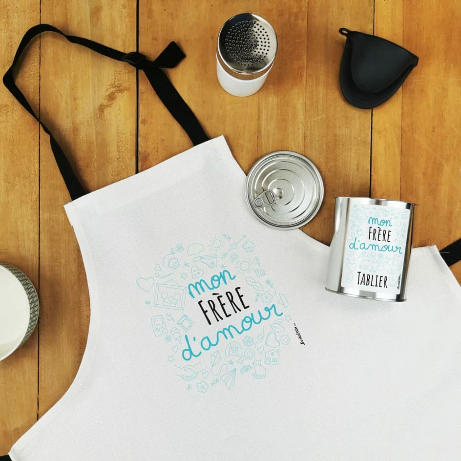 Tablier de cuisine dans sa boîte de conserve – “Mon Frère d’amour” – Cadeau Frère