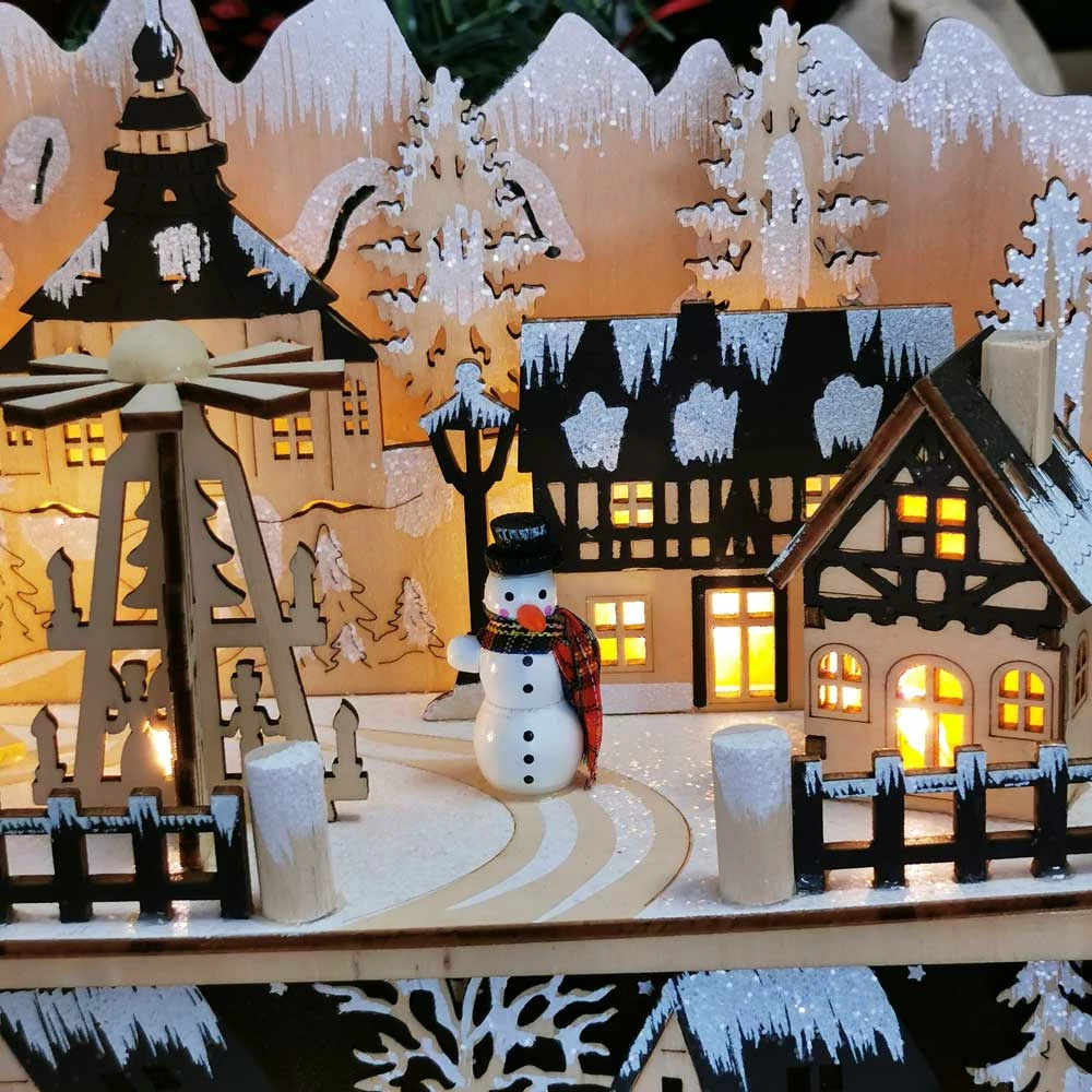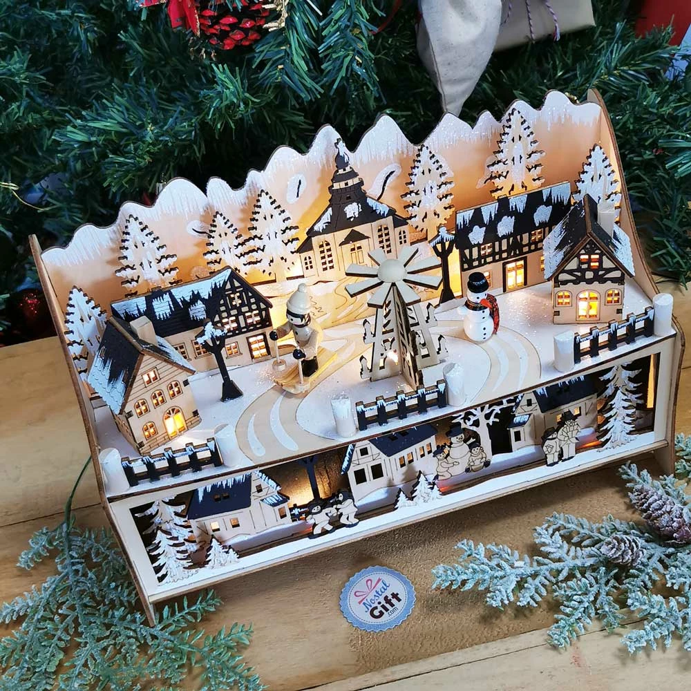 Village de Noel lumineux en bois – Lampe Rêve hivernal – Décoration de Noel